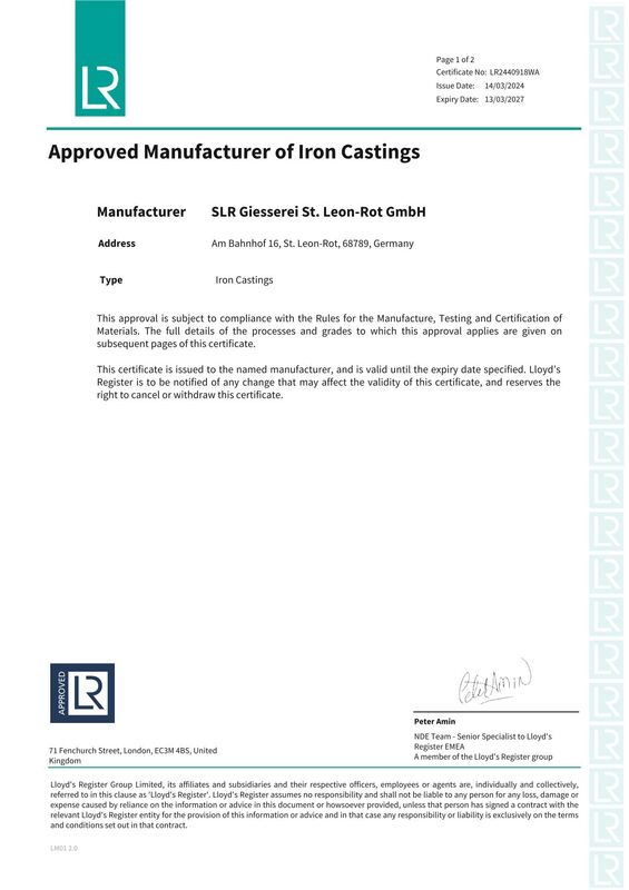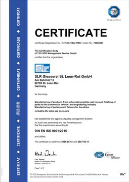 SLR gehört weltweit zu den führenden Anbietern von Gussteilen in erstklassiger Qualität. Grundlage hierfür ist unser nach ISO9001:2008 zertifiziertes Qualitätsmanagement. Darüber hinaus unterhält SLR ein Prüflabor auf der Basis entsprechend der DIN EN ISO / IEC 17 025.